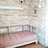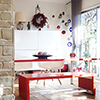 開放的なワンルームでありながら、存在感のある石張りの壁でリビングとダイニングをゆるやかに仕切ることで、ゆとりと安心感を演出しています。また、リビングから縁側、ガーデンへと、室内〜室外の連続するような空間づくりを意識することで、別荘のように穏やかでほっとくつろげる理想の住まいが実現しました。