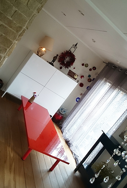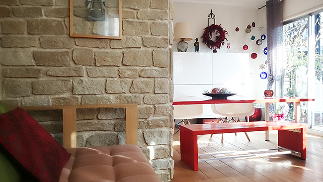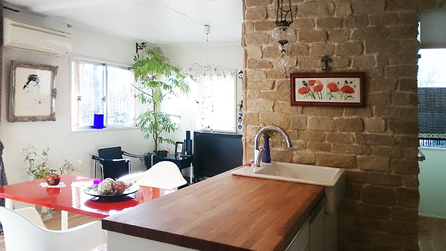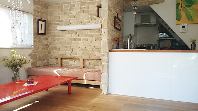 キッチンの配置をダイニングに隣接させて機能性を高めたことは、家族と談笑しながら調理ができる楽しさを増やしました。オークの無垢材を使用した床材と床暖房や壁の石貼りなど暖かみを感じる素材選び、使い方のアレンジが広がるオリジナル家具など、ERI企画らしいデザインに溢れています。