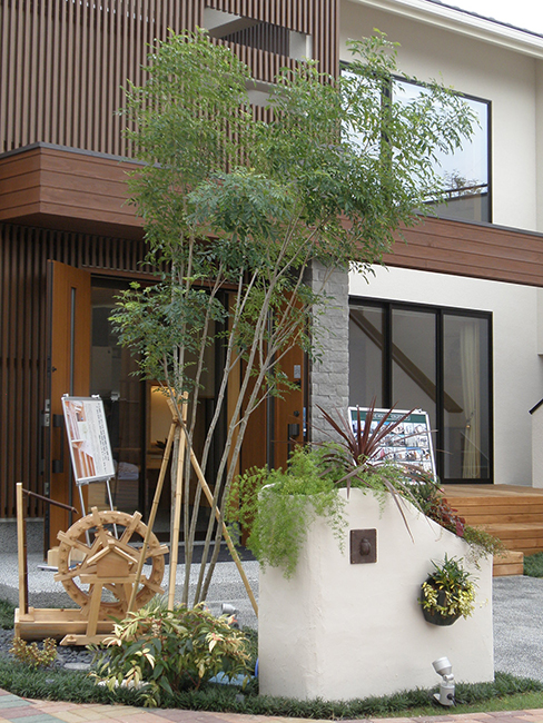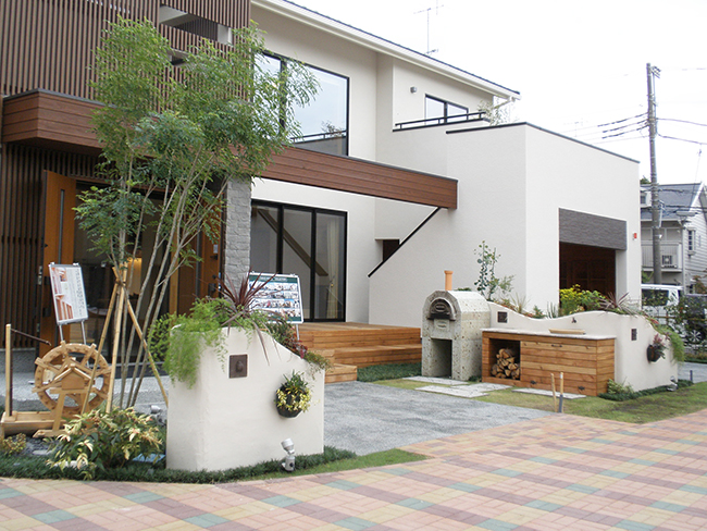 「住まいの顔、アプローチと野外キッチンで楽しく」