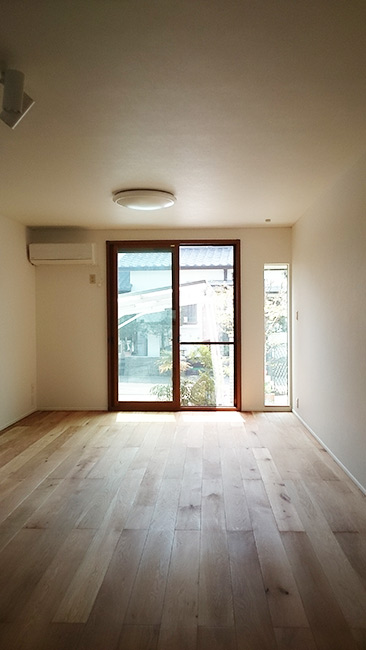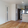 また、30年もの間、十分な広さをもちながら生かし切れていなかった6畳+8畳の和室を、思い切って洋室のリビングにリフォームしました。 壁一面に可動式の棚をもつたっぷりの収納を設けましたのでお部屋は広々。動線を見直し、洗面所へ続く引き戸も新設しました。