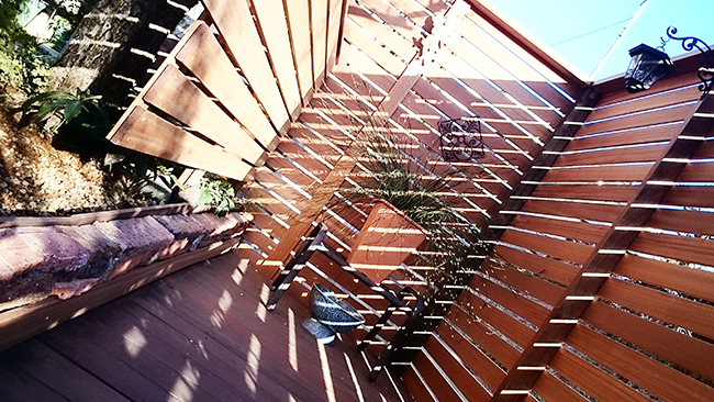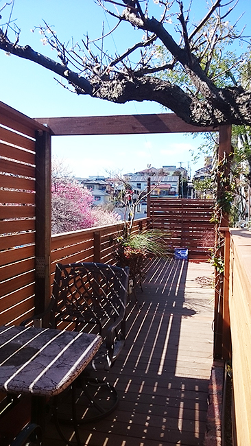 生き生きとした緑があふれるガーデンのデッキ・壁には、メンテナンス性の高い木材を使用。包まれるような心地よさで、程よい開放感とプライバシーを確保しています。植物を眺めながらゆったり過ごしたくなる、心癒される空間になりました。